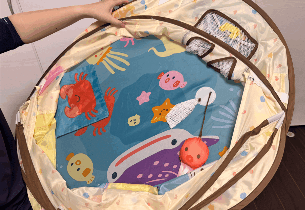 変身はしますが、あくまで“簡易的な”ボールプールです。本格的な大型のボールプールに比べれば、当然ながらサイズは小さく、ダイナミックな遊びには限界があります。