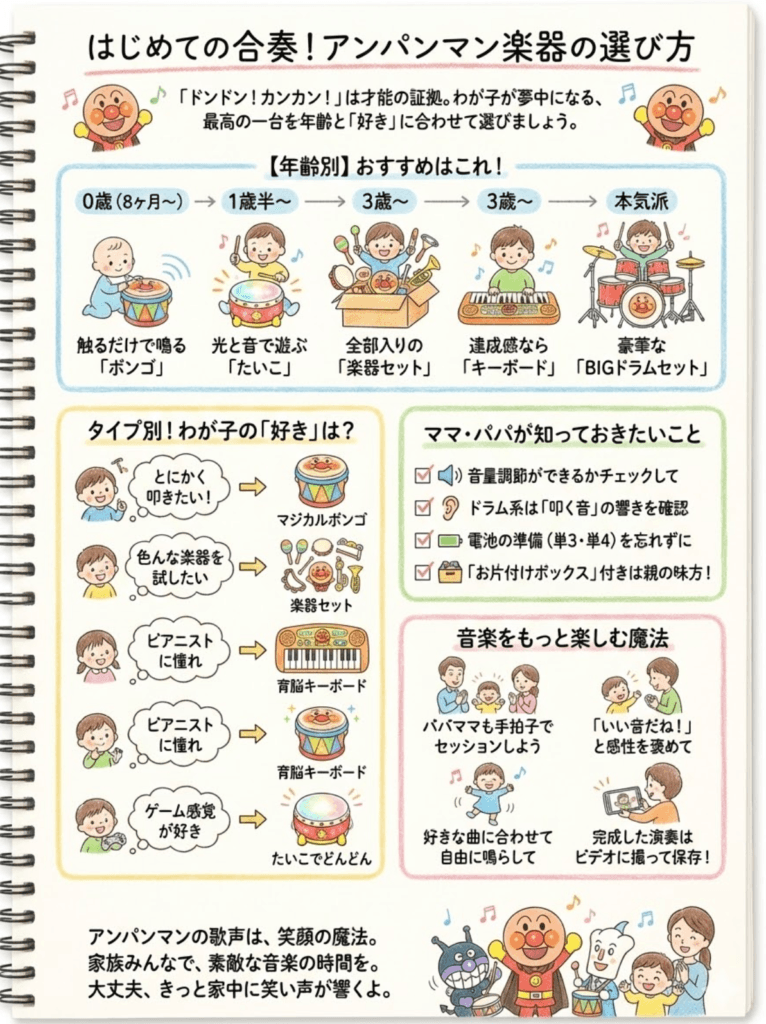 木製の、お洒落な知育楽器も、もちろん素晴らしい。でも、子供の“食いつき”と“持続性”という点で、アンパンマンの右に出るものはいない。断言できる。