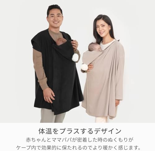 コニーの防寒ケープは、他のブランドとは一線を画す“着る”タイプ。ケープを抱っこ紐に装着するのではなく、ママやパパがコートのように羽織ることで、赤ちゃんと一体となって暖まります。そのため、風が入り込む隙間がなく、抜群の保温性を発揮。何より、そのスタイリッシュなデザインと、きれいめなコートにも馴染むおしゃれさは、他の追随を許しません。