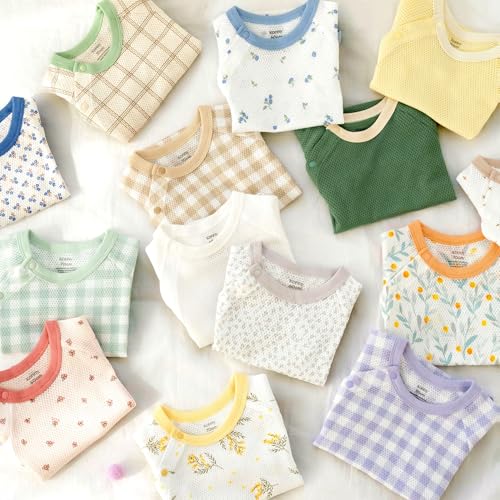 [Konny] Newborn コットンメッシュボディスーツ あせもの心配ゼロ 夏服 の着心地、通気性 カバーオール 敏感な肌にもOK! 綿100% 柔らかい素材 半袖 新生児 0~12ヶ月 (クリーミーギンガム、6M)