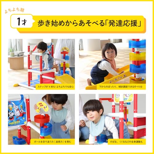 ミッキーたちを乗せて走らせることで、空間認識能力とごっこ遊びの想像力が同時に育ちます。