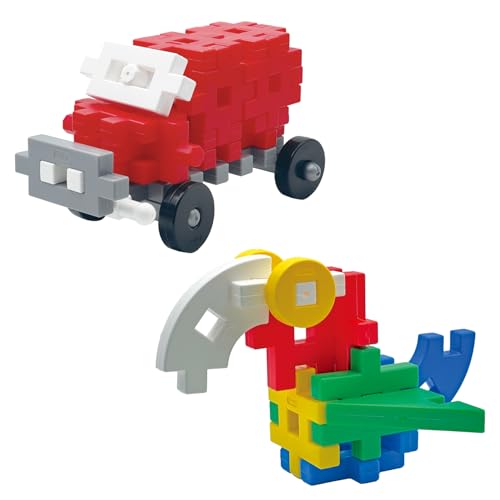 • 多すぎず、少すぎず。ニューブロックの基本的な遊び方(つなぐ、はさむ、さしこむ)を体験し、簡単な作品を作るのに、まさに過不足のないパーツ数と種類です。