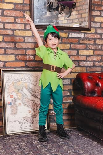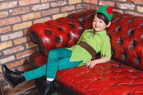 帽子、シャツ、ベルト、パンツの豪華4点セットで、一瞬で冒険の世界へ。パンツはストレッチの効いたスパッツ素材なので、元気いっぱいに走り回っても動きやすいのが嬉しいポイント。「ピーターパンみたい!」と、子供のテンションが上がること間違いなしです。