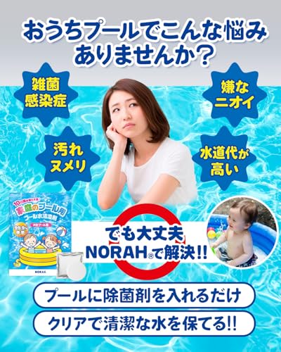 • 使用法: 遊んだ後、プールの大きさに合わせた規定量を投入し、かき混ぜるだけ。