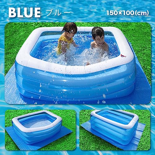 プール マット 厚手 【子供たちを笑顔にするプールマット】 大きい 300㎝用 250㎝用 200㎝用 150㎝用 大型 家庭用 シート カバー (ブルー, 185cm×135cm×3.5mm)