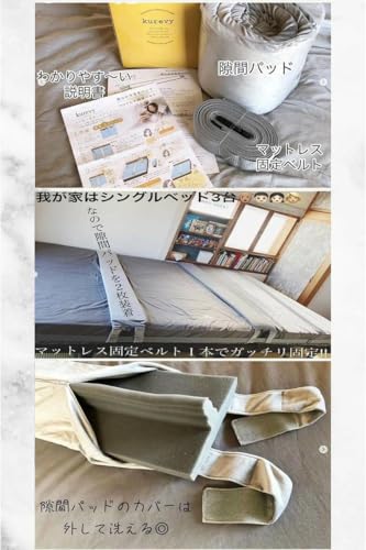 【マタニティ雑誌掲載】kurevy ベッド 隙間パッド パッド幅30cm すきまパッド 高級ベロアカバー付き マットレスバンド ベッドパッド マットレス 隙間スペーサー 隙間埋め 連結 固定ベルト10m 日本語取付説明書付き 日本メーカー国内検品済(30cmグレー 洗濯カバー付き)