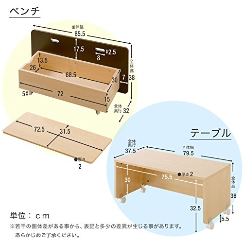 - ベンチは収納スペース付き! 座面の下が収納になっているので、おもちゃや学用品などをしまうのに便利です。