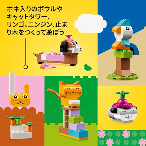 デュプロの完成されたフィギュアから一歩進んで、「四角いブロックを組み合わせて、自分で動物の形を作る」という、レゴ本来の楽しさを、最も簡単に体験できるセットです。「イヌには骨」「ウサギにはニンジン」といった、愛らしい付属品も魅力。レゴ 動物の作り方の基本が、この一箱に詰まっています。