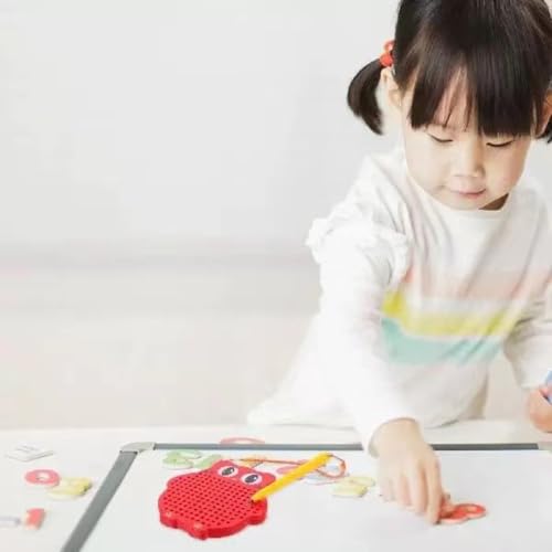 シンプルだからこそ、奥が深いんだ。483個の穴は、子供の小さな想像力を、無限に受け止めてくれるキャンバスになる。ペンを本体にカチッとはめてスマートに収納できる、細部まで考え抜かれたデザインも、親としては嬉しいポイントだよな。
