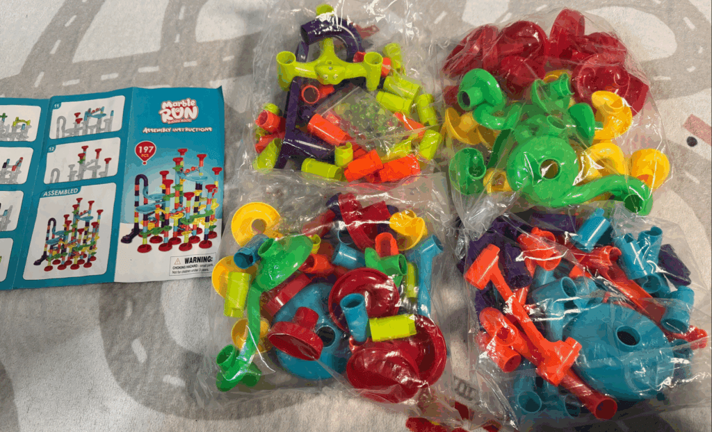 今回、我が家で実際に買ってみたのが、このタイプのプラスチック製スロープトイなんだ。正直、キュボロの1/10以下の価格だから、あまり期待していなかったんだけど…これが、とんでもなく面白かった!結論から言うと、“最初のビー玉転がし体験”として、これは最高の選択肢の一つだ!