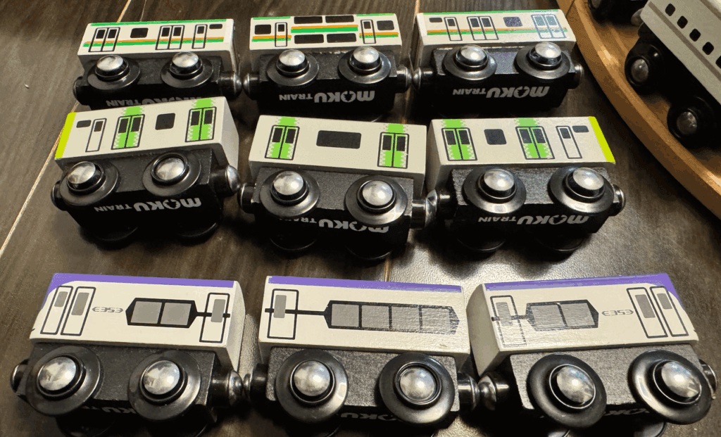 木の温もり、安全な設計、そして、大好きな日本の電車…。モクトレインって、私たちが木製おもちゃに求めていたものと、子供が電車おもちゃに求めるもの、その両方を、完璧に満たしてくれる存在だったのね。