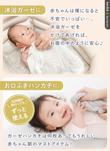 • お湯に入れる前に、赤ちゃんの胸やお腹に、お湯で濡らした沐浴布(ガーゼ)をかけてあげます。これは、赤ちゃんを安心させるための“お守り”です。
