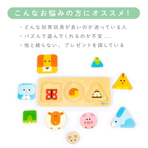• 型はめ要素: 動物の形をした枠にはめるタイプなので、1歳後半の早い時期から「形合わせ」として遊べます。