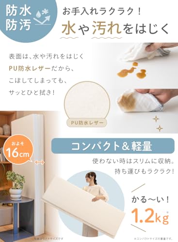 - シームレス(溝なし)デザインで、従来の折りたたみマットの「溝にゴミが溜まる」という弱点まで克服。
