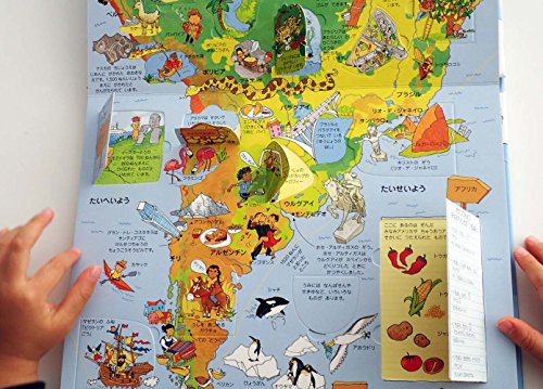 7つのエリアに分けて、そこに暮らす人々や動物、歴史的な名所などが、ぎっしりと描き込まれています。100以上のしかけをめくりながら、世界中を旅するように、雑学や豆知識を吸収できます。「この本一冊で、親子で世界地理博士になれる」と言っても過言ではないほどの、圧倒的な情報量。図鑑やクイズが大好きなお子さんへのプレゼントとして、これ以上のものはありません。