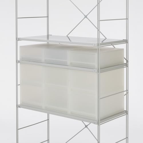 これが最大の理由です。一般的なカラボより棚板の位置を細かく調整できるので、収納ボックスの高さに合わせてギリギリまでデッドスペースを消せます。 - 連結・拡張ができる