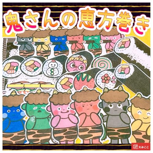 パネルシアター 恵方巻の由来について学べる【オニさんの恵方巻】節分 鬼 豆まき 食育やクッキングの導入にも◎ 保育教材 イラスト カード (Мサイズ)