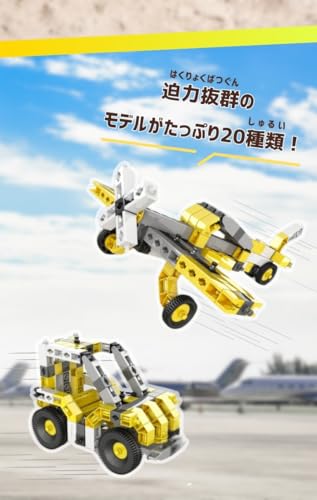 • 1つのキットで20種類もの乗り物モデルに変身! ヘリコプター、ショベルカー、ダンプカー、トラック、飛行機など、子供たちが大好きな働く車や乗り物を、組み替えながら20種類も作ることができます。