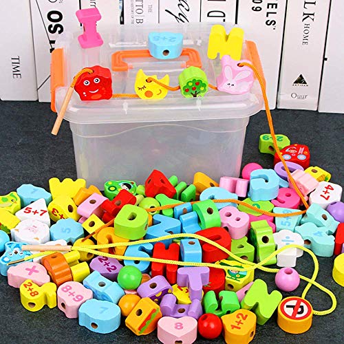 106個という大容量セット。数字やアルファベット、動物など多彩なビーズが入っており、ひも通しだけでなく、ごっこ遊びや単語作りなど、遊び方が無限に広がります。