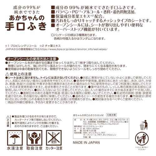 | おしりふき | 手・口 | ◯ | 化粧品なので基本的にOK。ただし、保湿成分が口周りに残るのが気になるなら、ノンアルコール・PGフリーの製品を選び、最後に乾いたガーゼで軽く拭くとより安心。 |