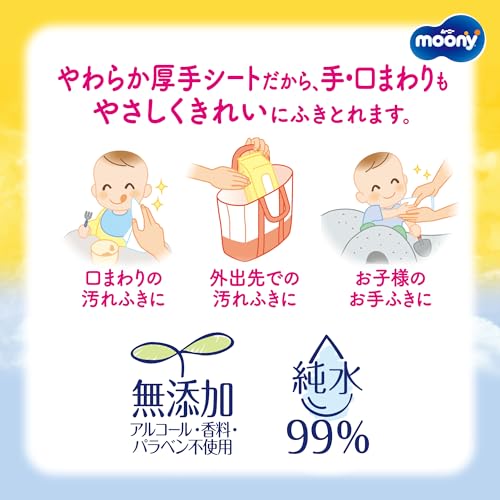 ▼ムーニー 手口ふき 純水99%:保湿も叶える“うるおい”タイプ