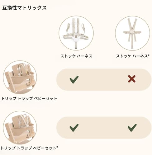 なるほど!椅子本体は“シャーシ”でしかなくて、ニューボーンセット、ベビーセット、ハーネスといった“オプションパーツ”を付け替えていくことで、新生児用のラウンジャーにも、ベビーチェアにも、安全なキッズチェアにも、“変身”していくのね!