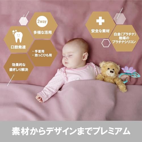 ✅ 手首に付いていることで、赤ちゃんが自然と口元に運びやすく、指の代わりにカミカミしやすい。