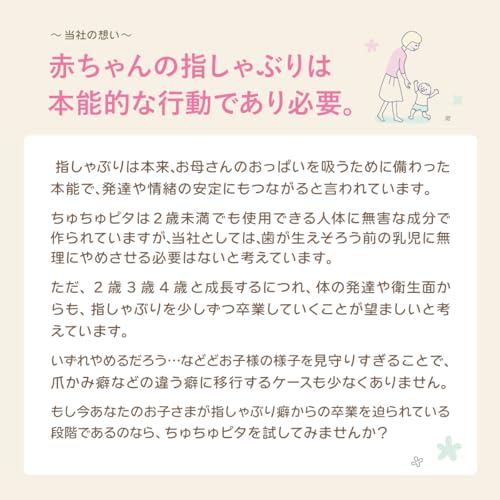 なるほど~。指しゃぶりって、赤ちゃんにとっては安心したり、学んだりするための大事な行動でもあるのね。一概に「ダメ!」って決めつけちゃいけないんだわ。