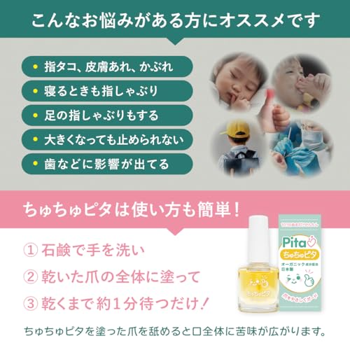 - 苦いマニキュア: 指に塗ることで、しゃぶった時に苦味を感じさせます。子供用の安全な成分のものを選び、使用前にパッチテストなどを行うのが望ましいです。これも子供によっては強いストレスになるため、使用は慎重に判断しましょう。